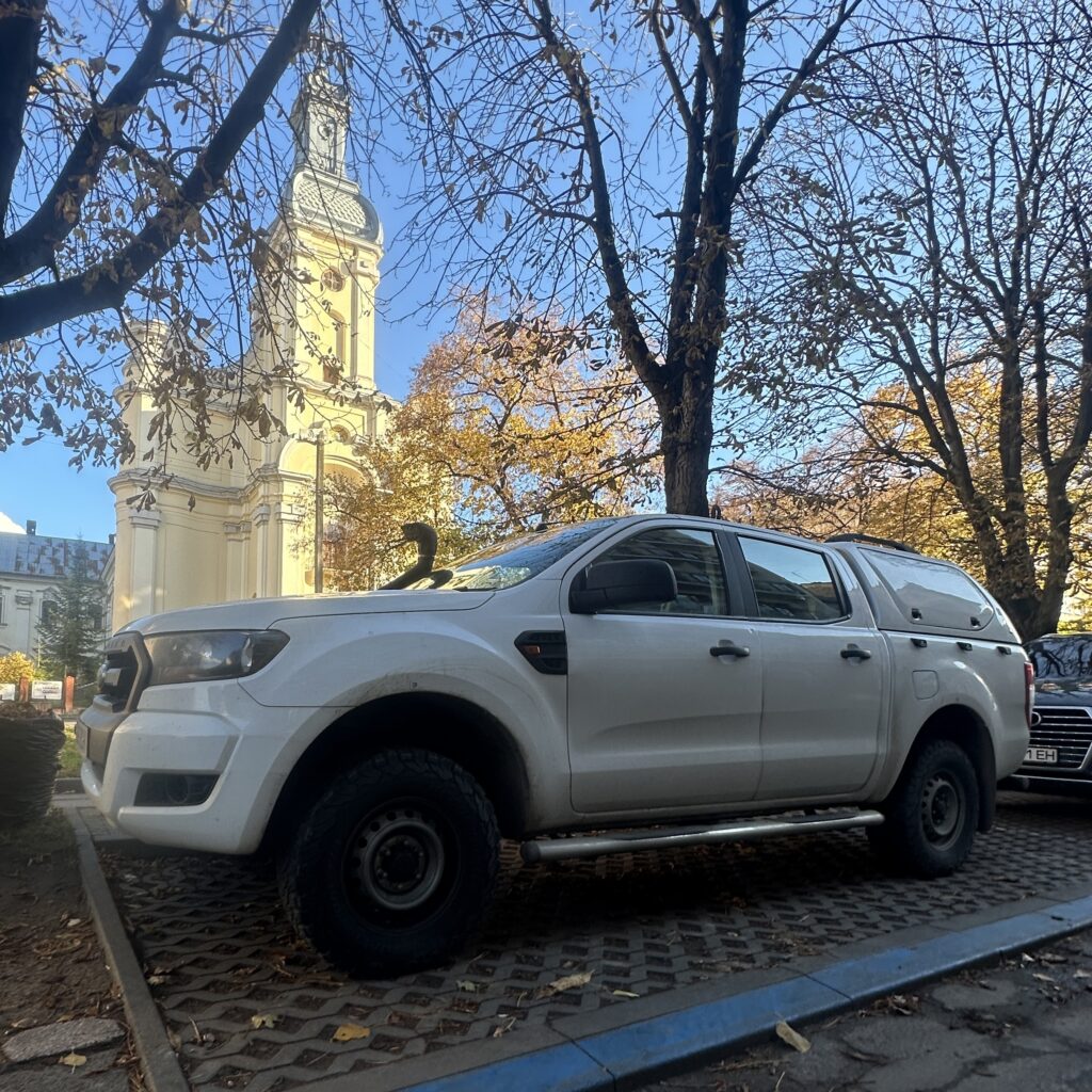 Our primary purpose was to deliver a pick-up truck that had been purchased with a generous donation from an EDA donor and to deliver it to a medical centre in the east of the country. This vehicle had been requested through Ukrainian contacts of David. It had been carefully specced and sourced as there are too many donated ambulances in Ukraine, kindly donated, but not suitable for the appalling roads near front line areas. What is needed are robust 4×4 pickup trucks capable of negotiating the mud and craters of the combat zones. The truck would be used to evacuate the injured to medical stabilisation points prior to their transfer to more established medical hospitals. It would also be used to support the civilian population who defiantly refuse to leave the border areas despite regular Russian raids.